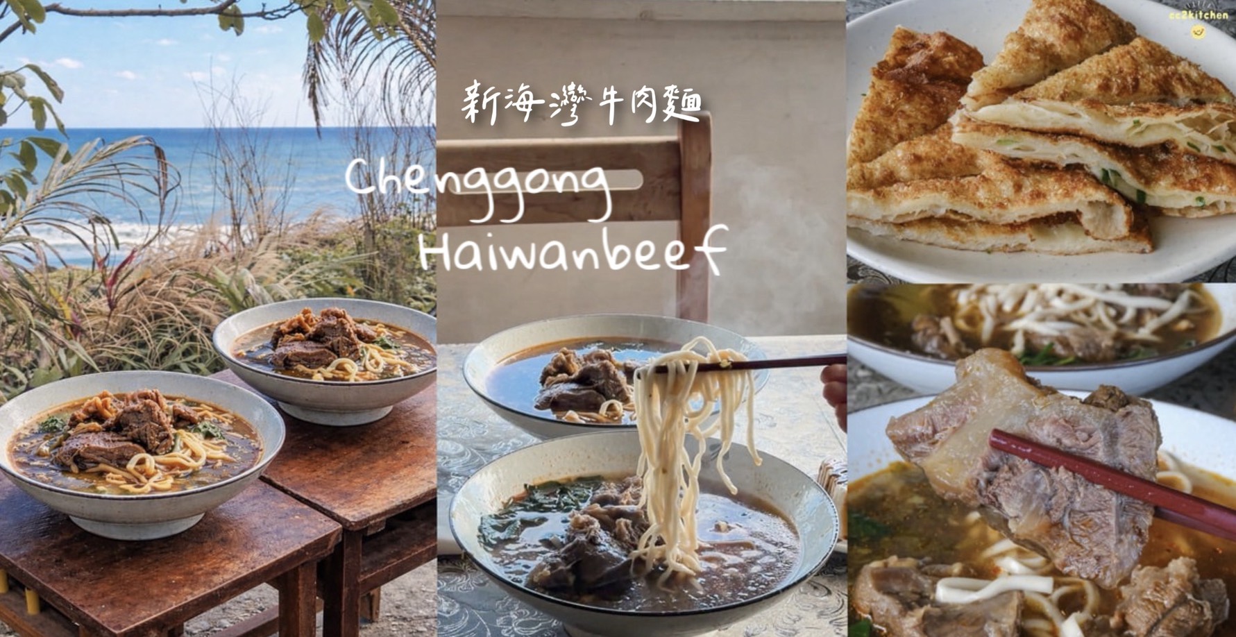 台東成功美食推薦「新海灣牛肉麵-手工蔥花餅」,台11線海景牛肉麵隱藏版小店,半筋半肉紅燒牛肉麵配海景超療癒~