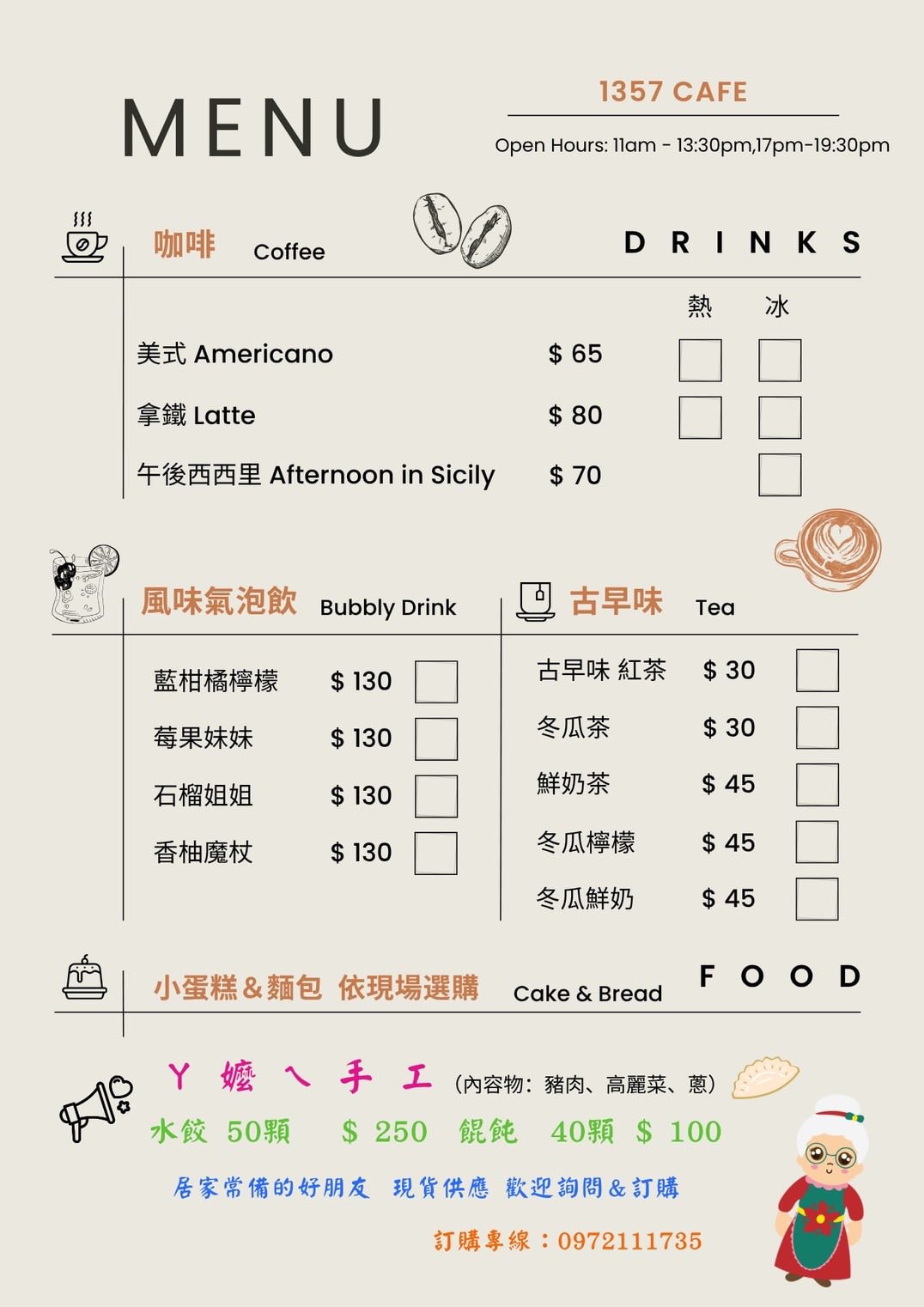 平日的1357木子慢食,主要以提供水餃、燴飯、湯麵、蔬食排餐為主。