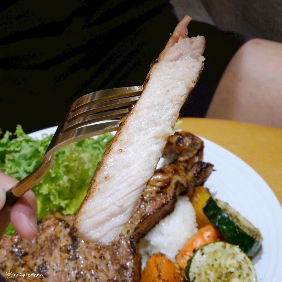 整隻帶骨的大份量豬排霸氣十足,厚實的肉塊搭配長長的骨柄,光是視覺就很加分!