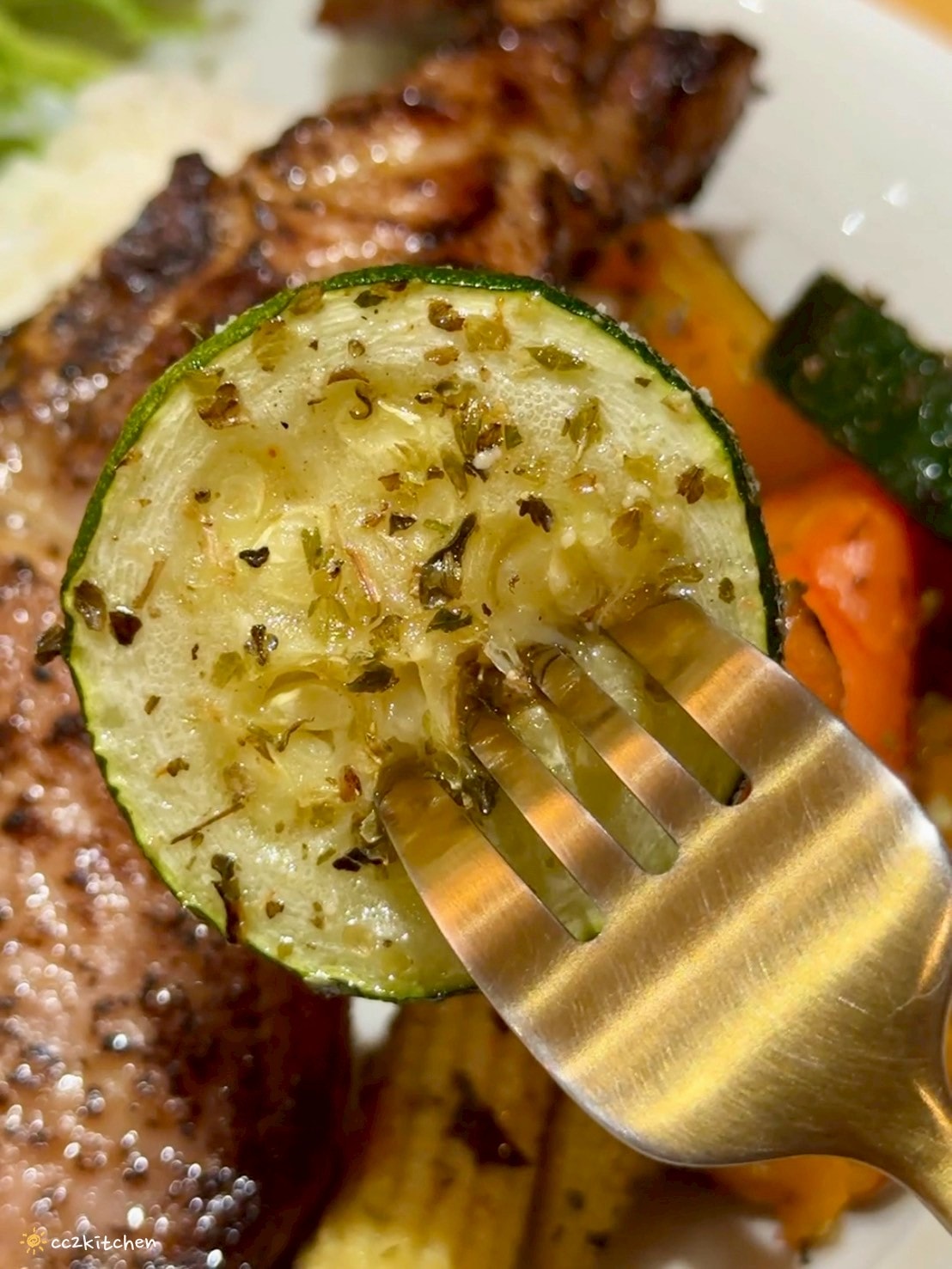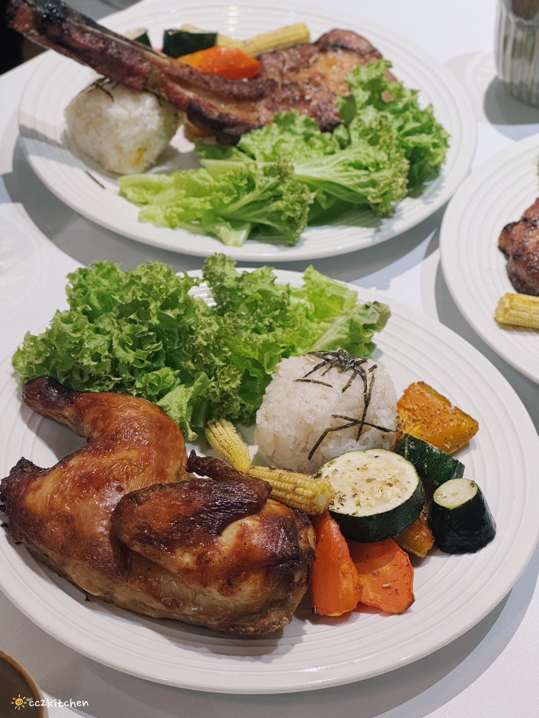 搭配簡單調味的烤時蔬與白飯,一整份餐點不只飽足感十足,也吃得超滿足。