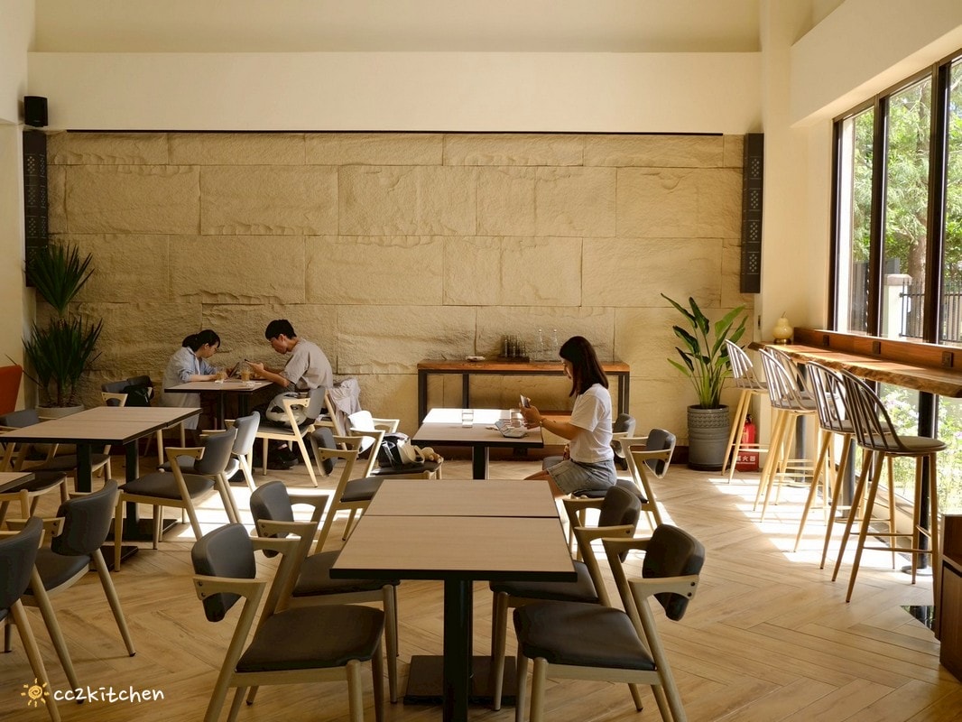 走進店內,映入眼簾的是高挑原木結構與質感家具,陽光從落地窗灑落而下,讓整體空間更為通透、採光明亮營造了股清新質感氛圍。