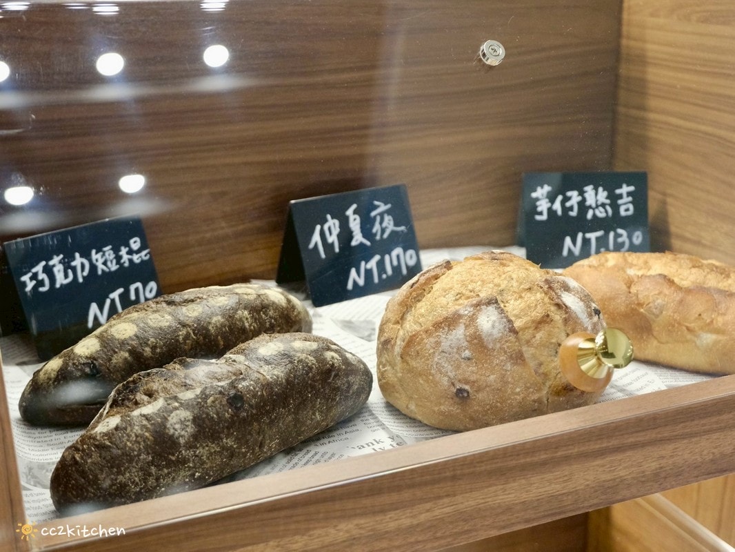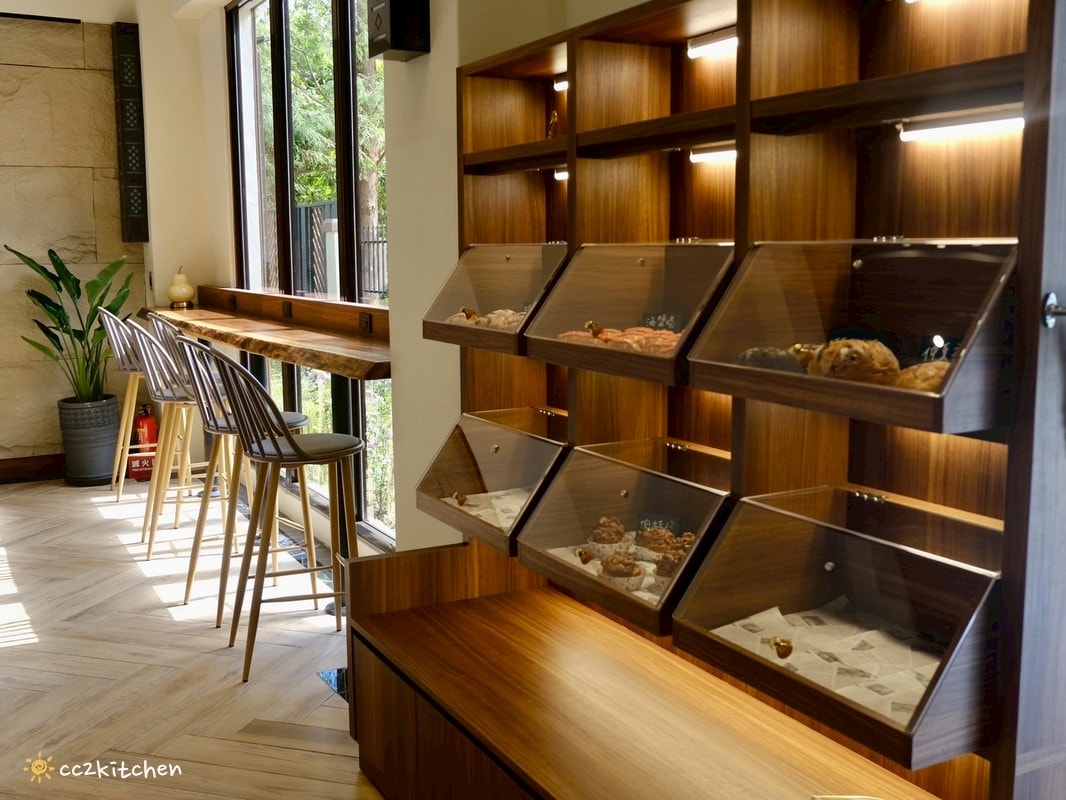 另一側牆面則擺放了多款現烤麵包,選項不少,當天來訪時,不少在地客特地來外帶,麵包出爐沒多久就幾乎被掃空,不過店員補貨的速度也很快,不用擔心會撲空。