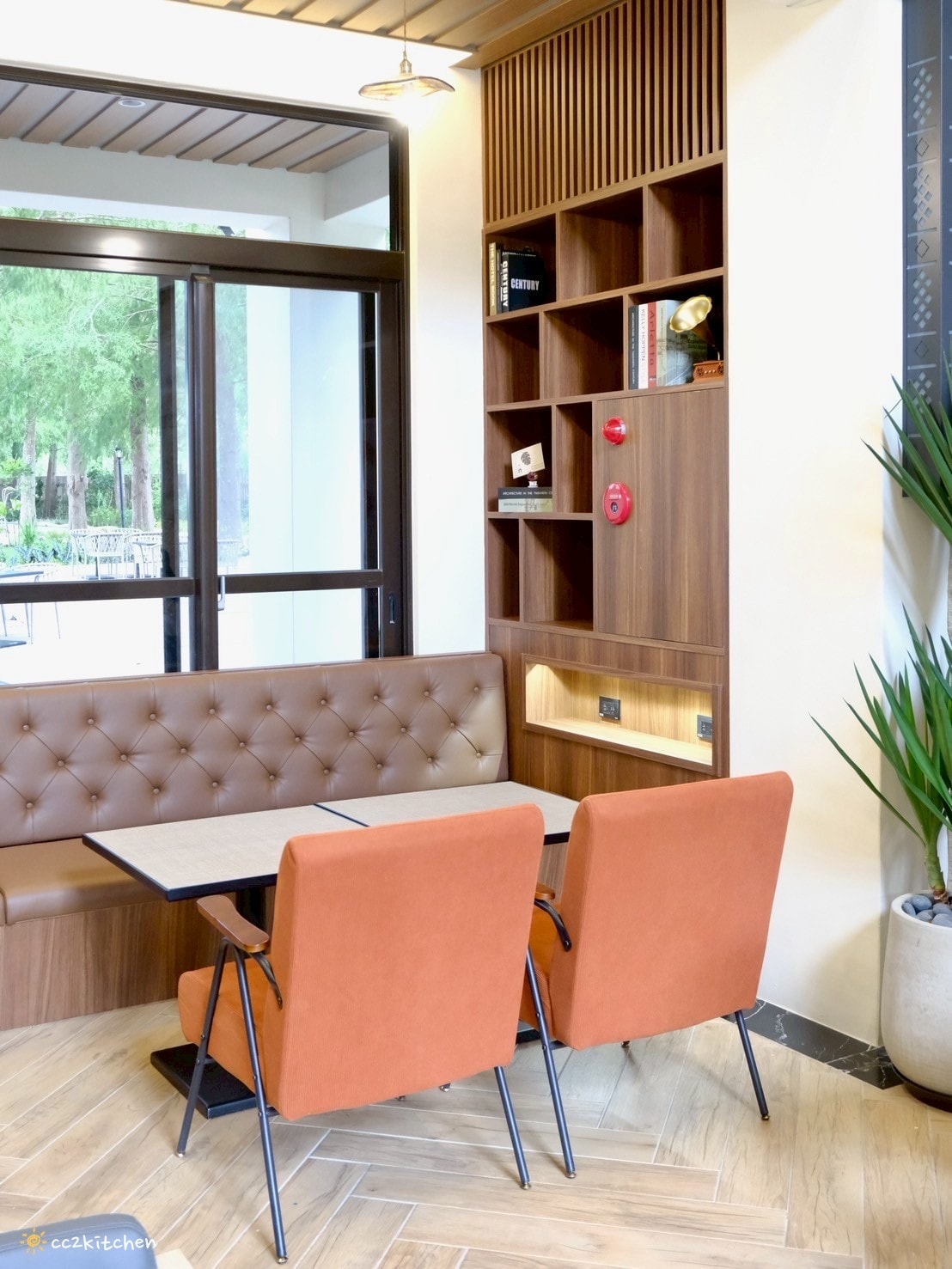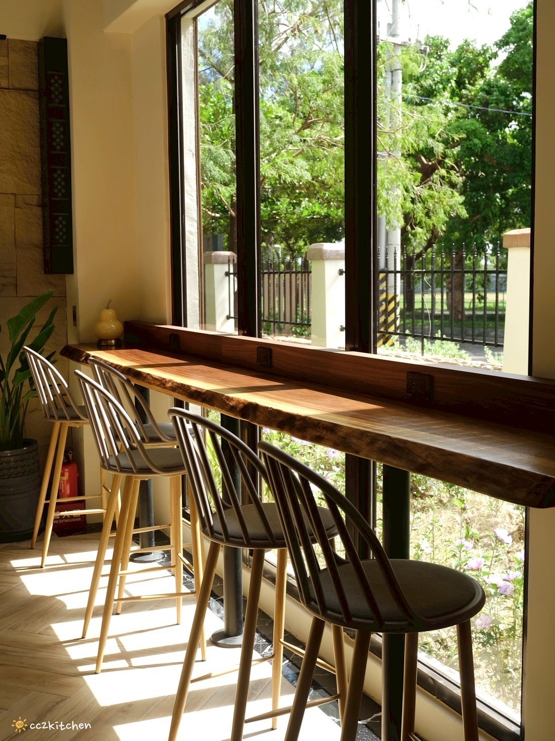 而「222 Café」最迷人的風景,莫過於窗外那一整排隨風搖曳的落羽松,滿眼翠綠、層層樹影隨風搖曳,就像不小心闖入了一座靜謐的森林秘境。