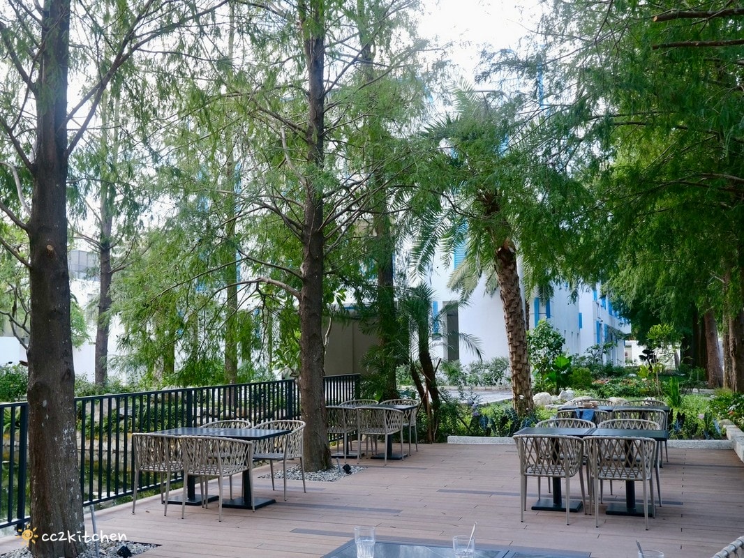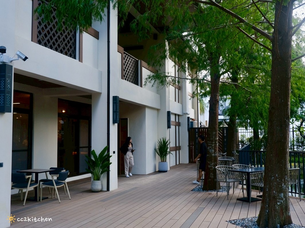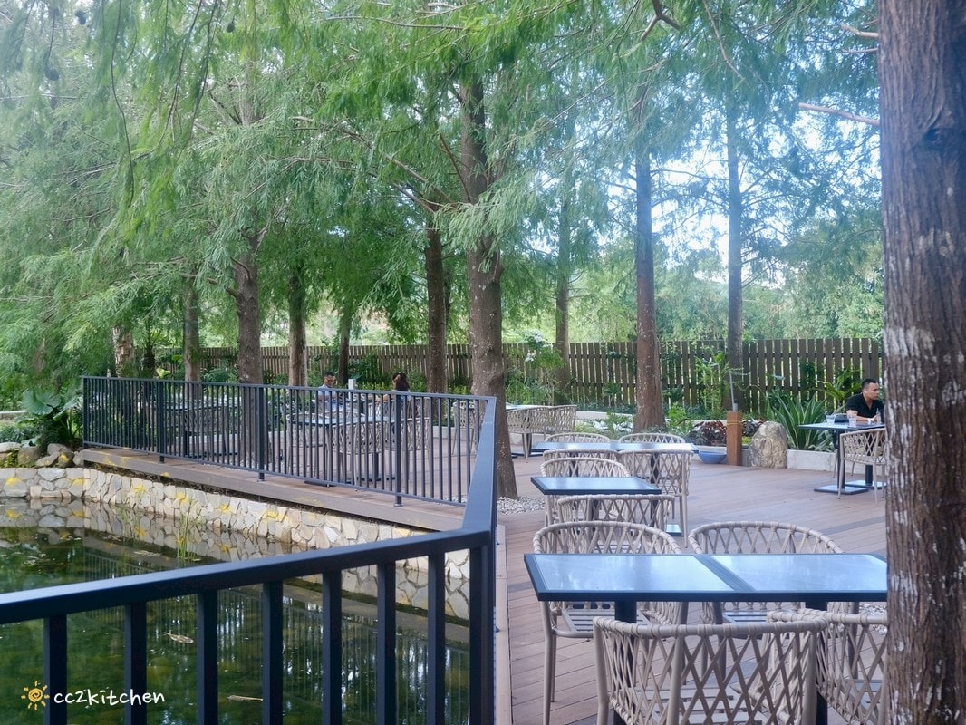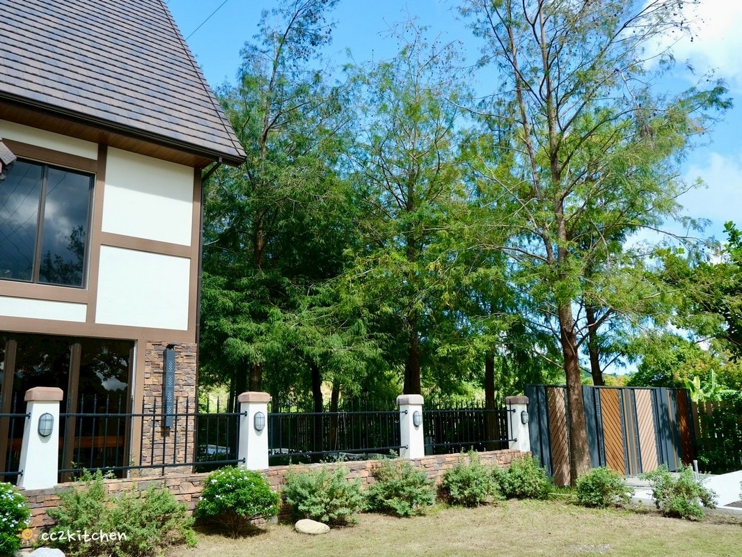 戶外空間以綠意包圍,整個氛圍讓人瞬間放鬆,歐風木屋+落羽松秘境,度假氛圍100分~