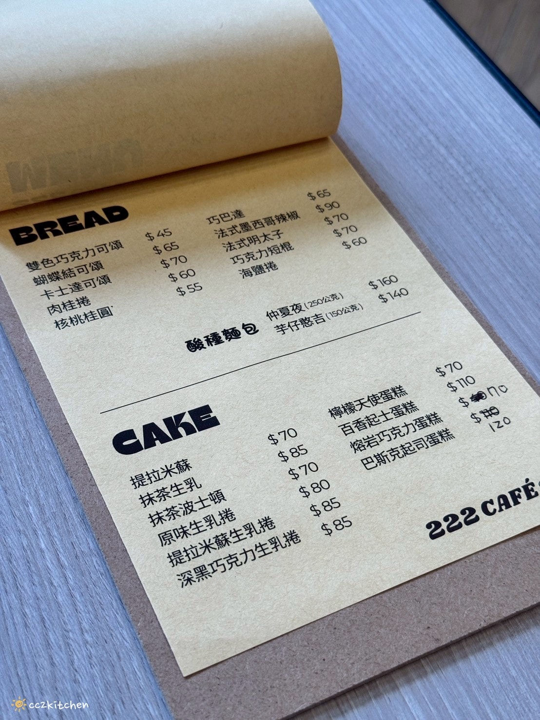 222 Café 菜單
