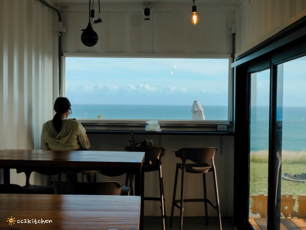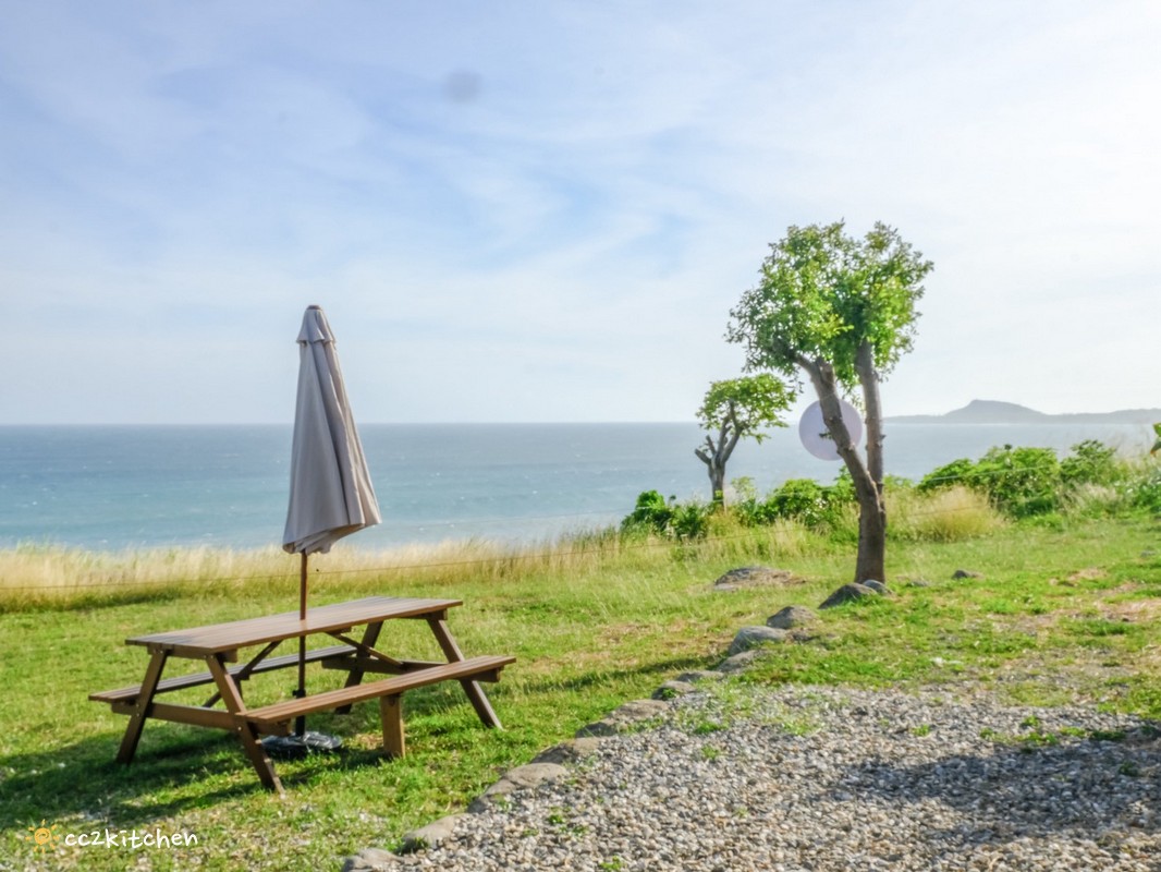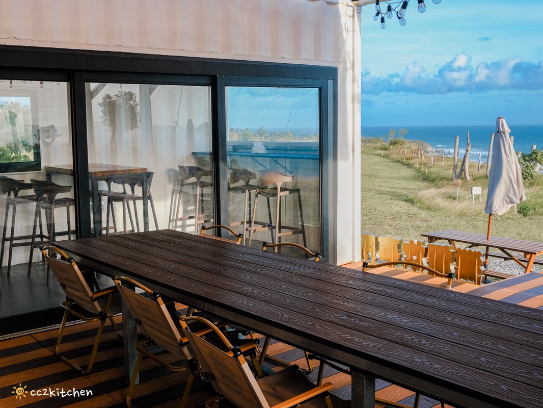 來到獵煙炊事所,可以在這兒欣賞無邊無際的療癒海景;門前是一片開闊的大草皮,天氣好時可以在這裡迎著海風散步、坐著放空,甚至直接躺在草地上看雲、賞星,愜意又浪漫。這裡不只是餐酒館,更像是一個能讓人真正「放鬆呼吸」的海邊角落。