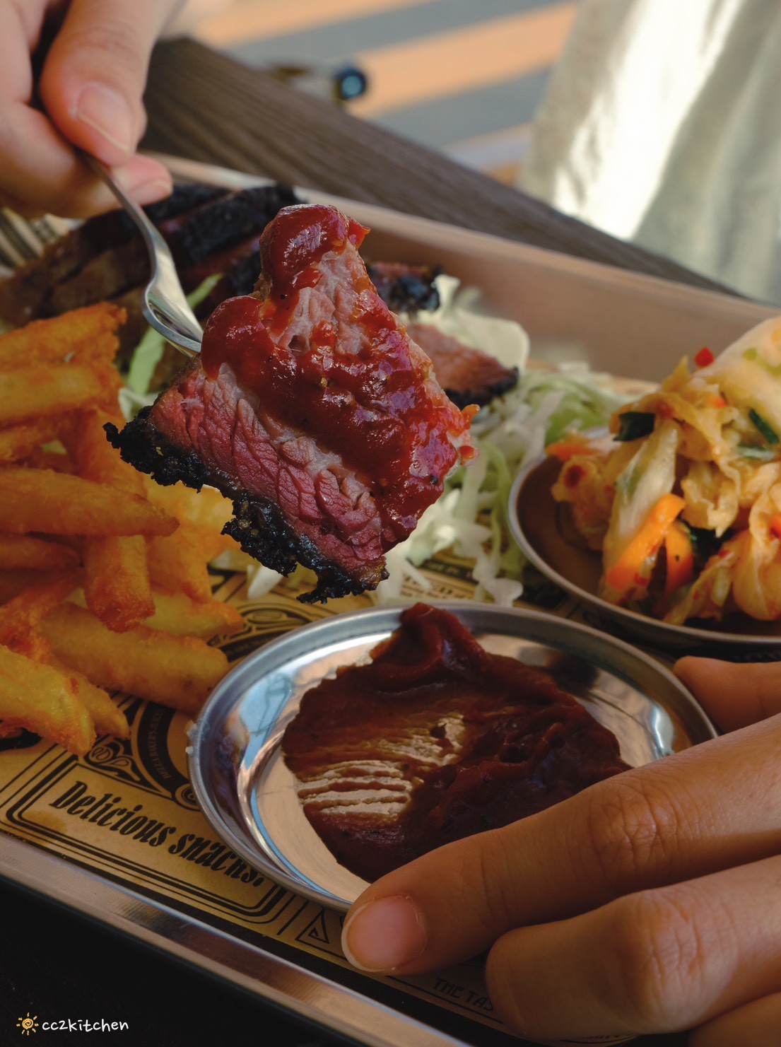 這裡的番茄醬和一般市售的味道不太一樣,是老闆特調的秘方。不會過於甜膩,帶著自然的番茄酸香,無論是搭配薯條還是煙燻肉都很搭~