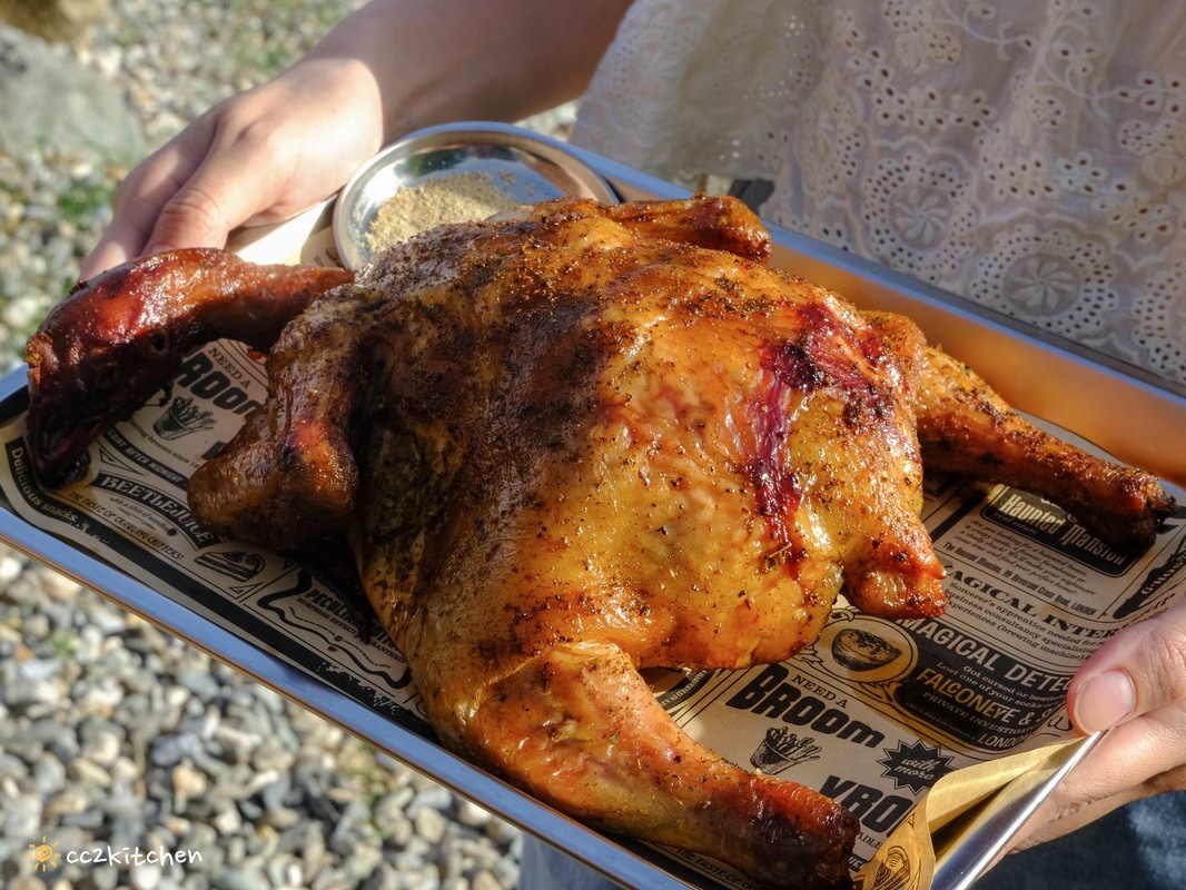 剛出爐的烤雞散發陣陣熱氣伴隨著濃郁的雞汁香氣,雞肉口感軟嫩多汁!