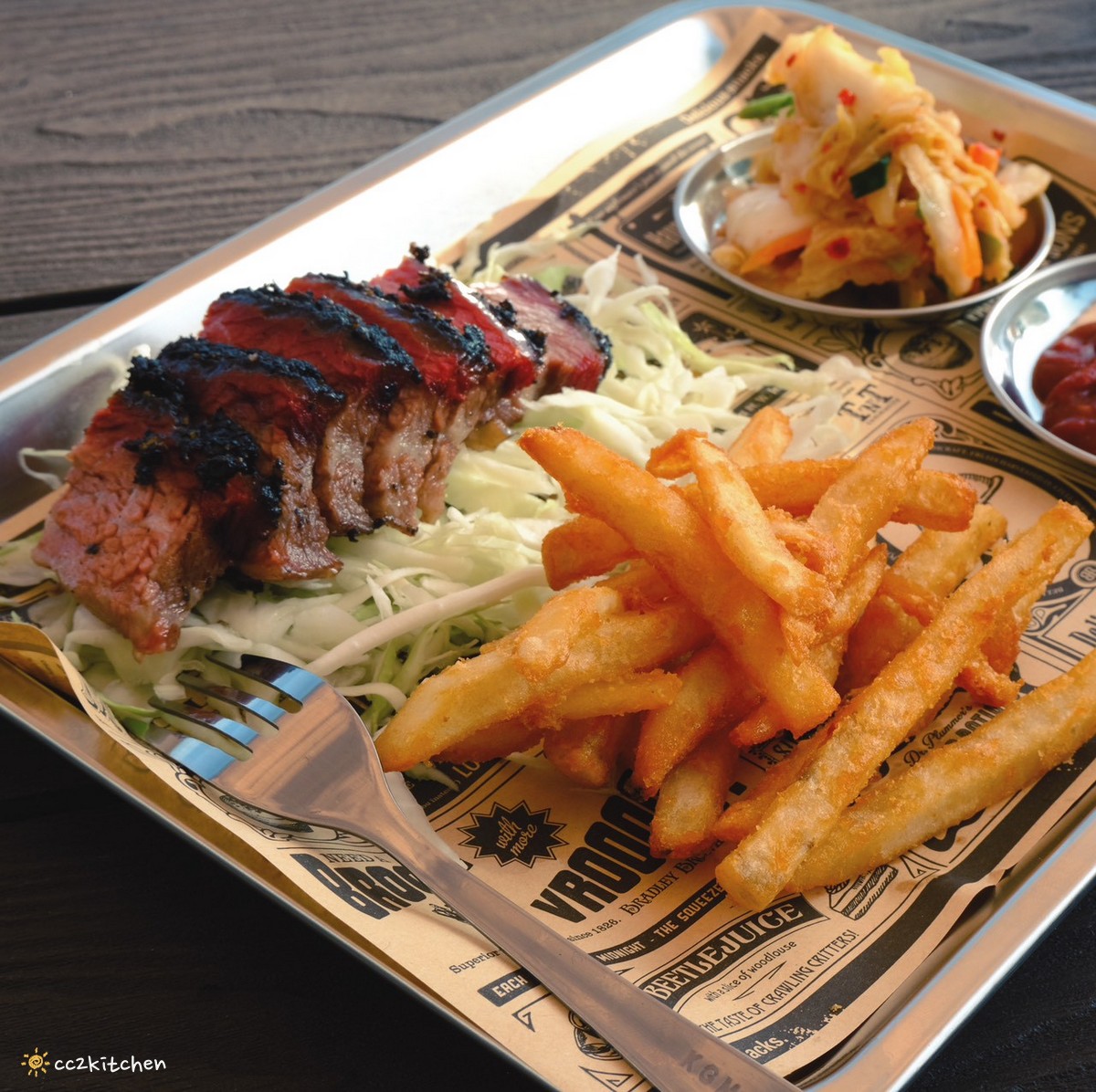 套餐含牛胸肉100g、炸薯條100g、泡菜。