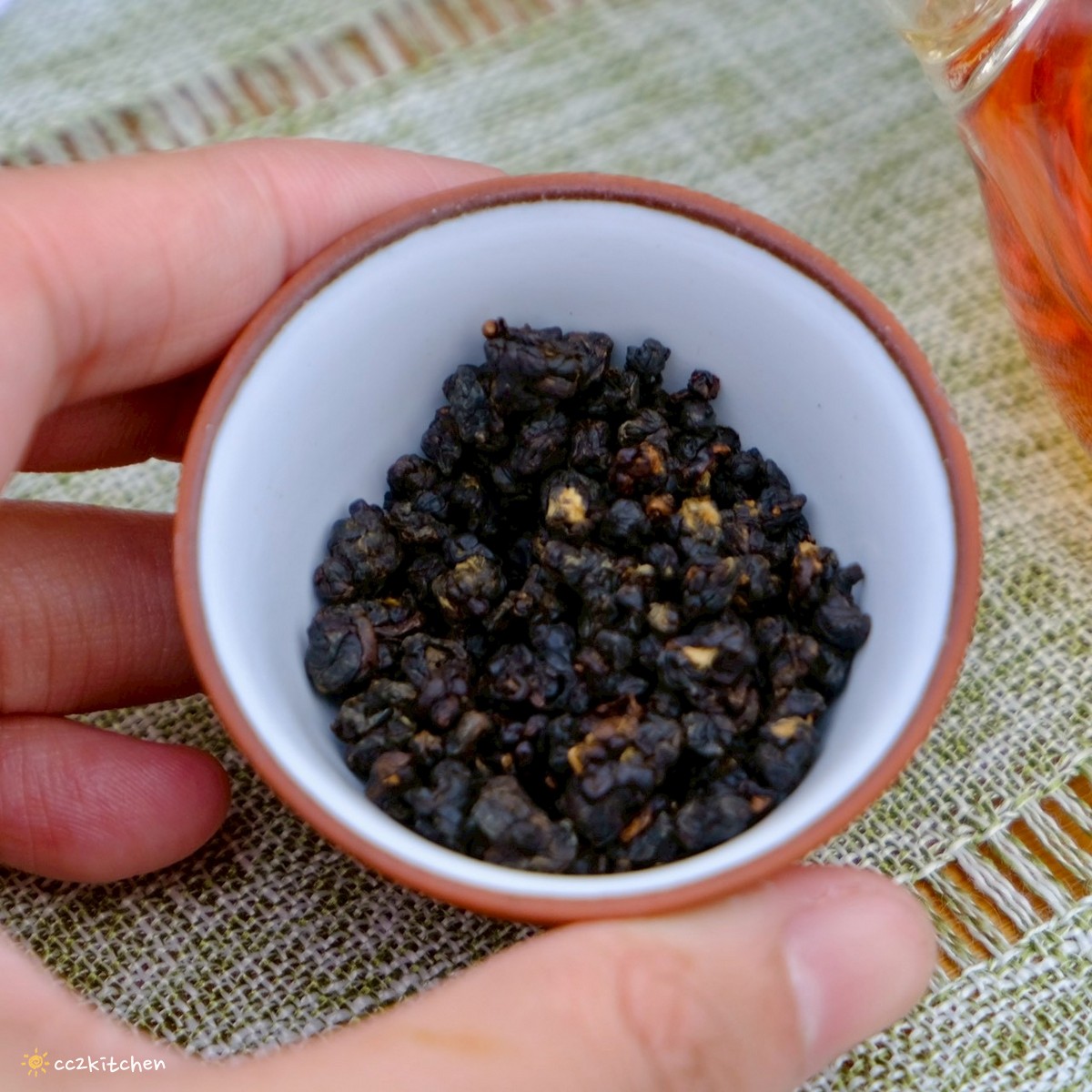原葉為半球型,色澤暗紅帶有光澤,經過重發酵和重烘焙,較一般烏龍茶更不易變質,耐泡且冷熱泡都適合。